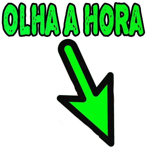 Uma seta verde apontando para baixo com o texto 'OLHA A HORA' em letras verdes acima.