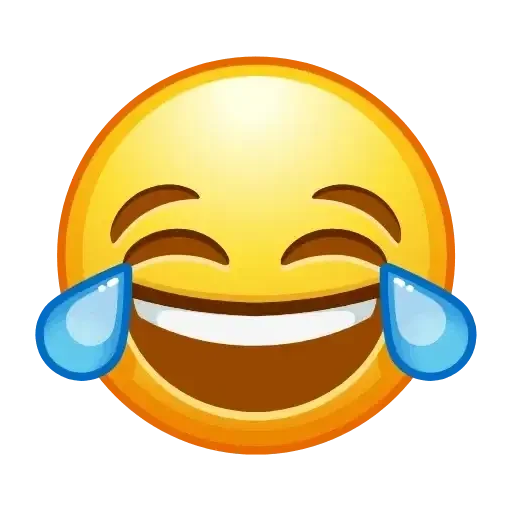 Emoji de rosto amarelo com lágrimas de alegria, olhos fechados e sorriso largo.