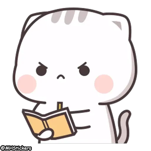 Gatinho branco com cara de desconfiança lendo um livro amarelo.