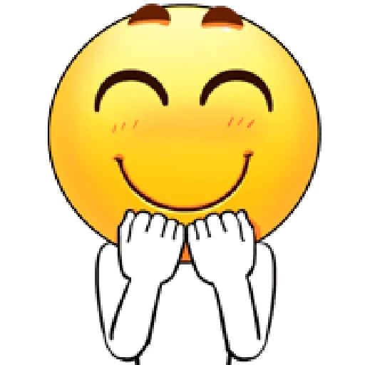 Um emoji amarelo com um sorriso e bochechas rosadas, com as mãos no rosto e sobrancelhas levantadas.