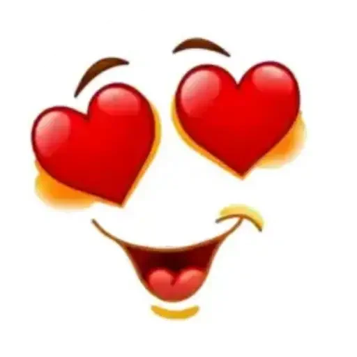 Rosto com olhos em forma de coração e sorriso largo, expressando amor ou adoração.