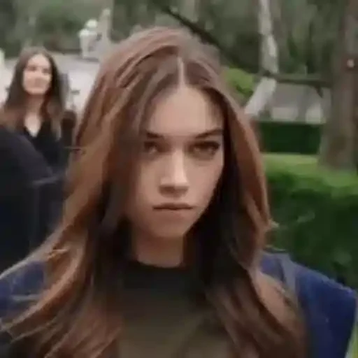 Mulher com expressão séria e cabelos castanhos longos, com outra mulher ao fundo. Ela parece preocupada ou desapontada.