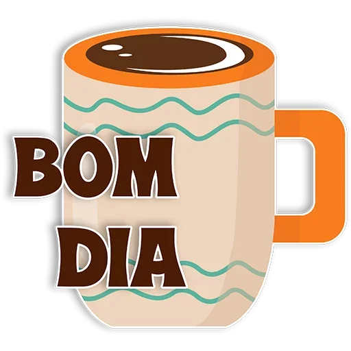 Uma xícara de café com o texto 'BOM DIA' em letras marrons.