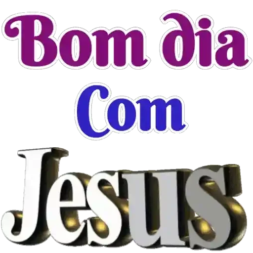 Um texto colorido que diz 'Bom dia Com Jesus'. As palavras 'Bom dia' estão em roxo, 'Com' em azul e 'Jesus' em branco com sombras douradas.