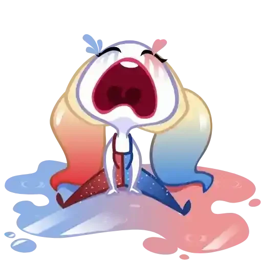 Personagem de anime com expressão de surpresa ou choque, boca aberta e olhos fechados, em um fundo colorido com respingos de tinta.