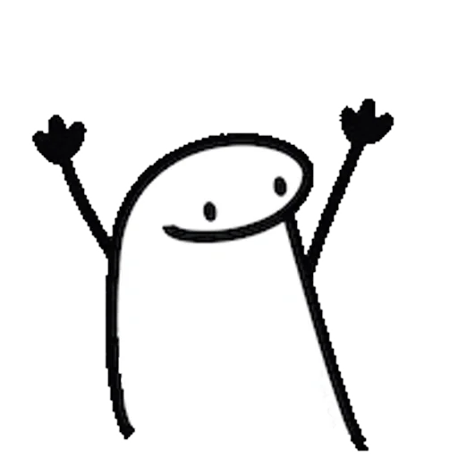 Um desenho simples de uma pessoa com um sorriso, braços levantados e punhos fechados.
