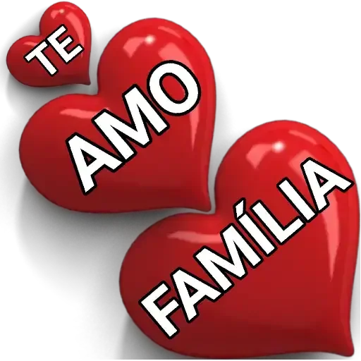 Três corações vermelhos com as palavras 'TE AMO FAMÍLIA' escritas em branco. Os corações têm um efeito brilhante e estão dispostos de forma diagonal.