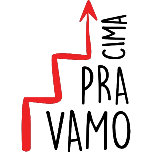 Uma seta vermelha apontando para cima com o texto 'PRA VAMO CIMA'