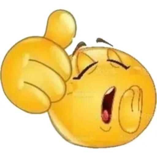 Um emoji amarelo com expressão de alegria e polegares para cima, com os olhos fechados e a boca aberta em um sorriso.