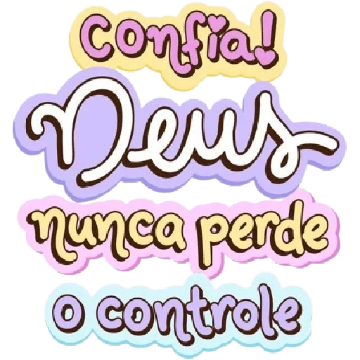 Uma figurinha com texto colorido que diz 'Confia! Deus nunca perde o controle'.