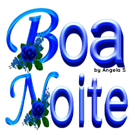 Um 'Boa Noite' decorativo com flores azuis e letras azuis brilhantes. O texto 'by Angela S' aparece em preto.