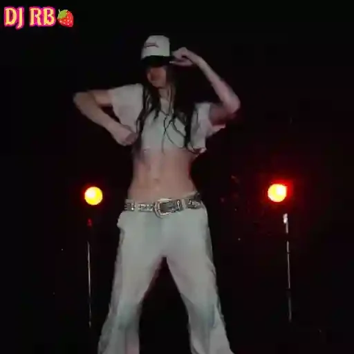 Uma mulher de meia-noite dançando em frente a luzes vermelhas, usando um chapéu e roupa branca, com o texto 'DJ RB' no canto superior esquerdo.