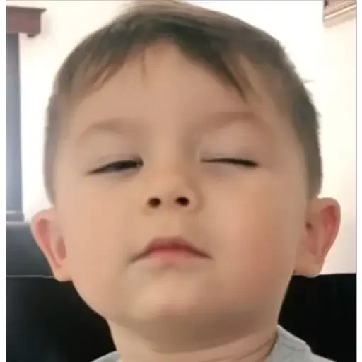 Menino com os olhos fechados e uma expressão facial relaxada.
