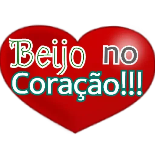Um coração vermelho com o texto 'Beijo no Coração!!!' em letras azuis e brancas.