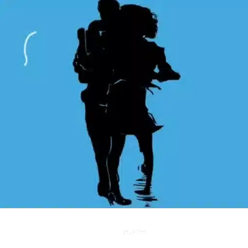 Silhueta de um casal contra um fundo azul, o homem carregando a mulher.