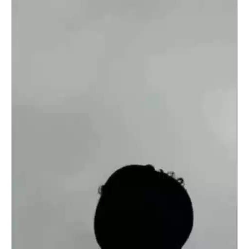 Cabeça de uma pessoa com cabelo preto em um fundo cinza.