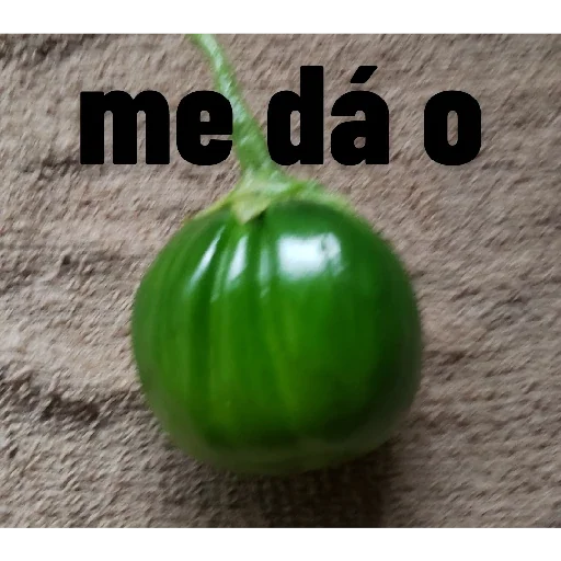 Uma abobrinha verde com o texto 'me dá o' em preto.
