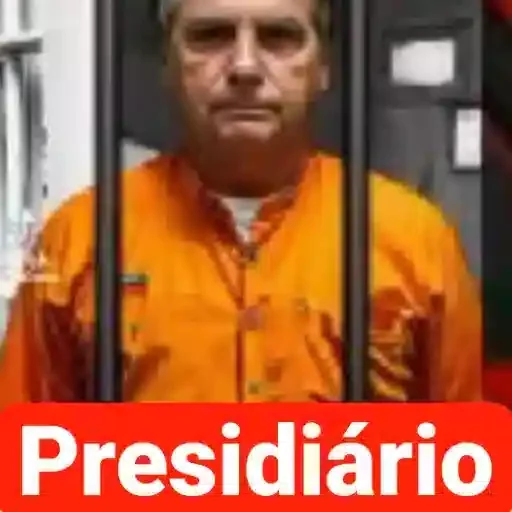 Um homem com expressão séria, vestindo uma camisa laranja, atrás de grades de prisão. A palavra 'Presidiário' está escrita em uma faixa vermelha na parte inferior.