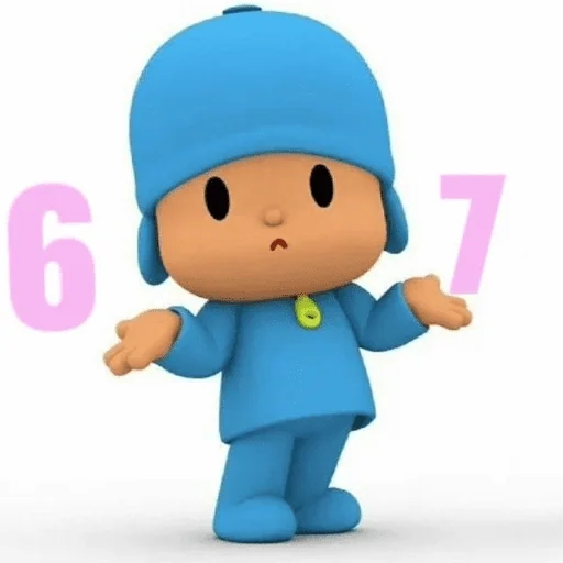 Personagem de desenho animado vestindo azul com números 6 e 7 ao lado.