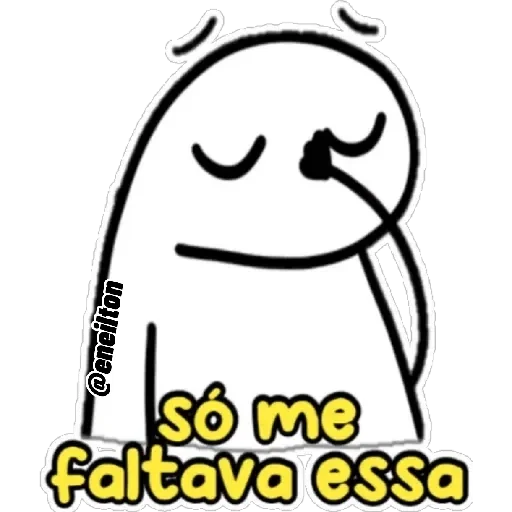 Um desenho simples de uma figura com a perna levantada e expressão facial neutra, com o texto 'Era só o que faltava'…