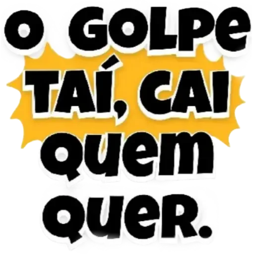 Um texto em preto sobre um fundo branco com um efeito de explosão amarelo atrás das palavras 'TAÍ, CAI'. O texto diz 'O GOLPE TAÍ, CAI QUEM QUER.'