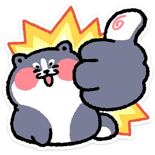 Um desenho de um hamster cinza e branco com bochechas rosadas e língua para fora, com um gesto de mão levantada e uma explosão amarela ao fundo.