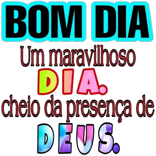 Uma figurinha com a mensagem 'BOM DIA Um maravilhoso DIA. cheio da presença de DEUS.' em letras coloridas.
