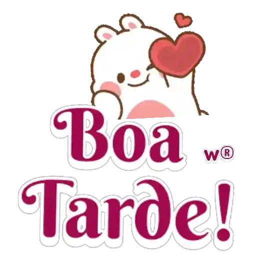 Um ursinho branco com um coração vermelho na frente, sorrindo e com a frase 'Boa Tarde!' em letras grandes e vermelhas.