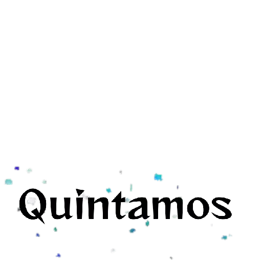 Confeti colorido com a palavra 'Quintamos' em preto.
