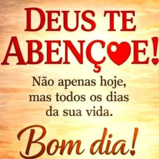 Uma mensagem de bom dia com fundo de pôr do sol, texto 'DEUS TE ABENÇOE!' em vermelho com um coração, e 'Não apenas hoje, mas todos os dias da sua vida. Bom dia!' em preto e vermelho.