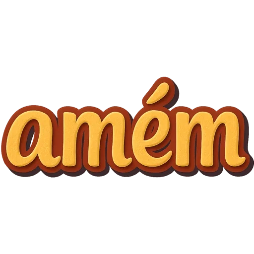 A palavra 'amém' escrita em letras grandes e arredondadas, na cor amarela com contorno vermelho.