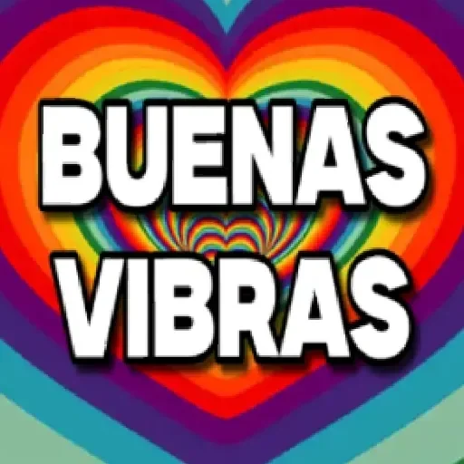 Coração colorido com as palavras 'BUENAS VIBRAS' em branco.