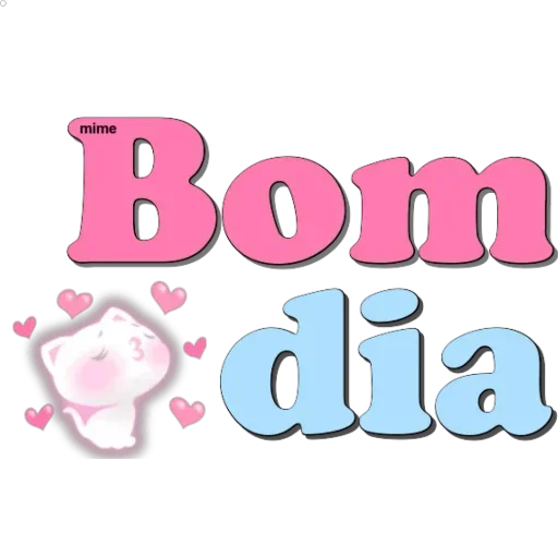 Um desenho colorido com a frase 'Bom dia' em letras grandes, rosa e azul, acompanhada de um rosto sorridente e corações rosa.