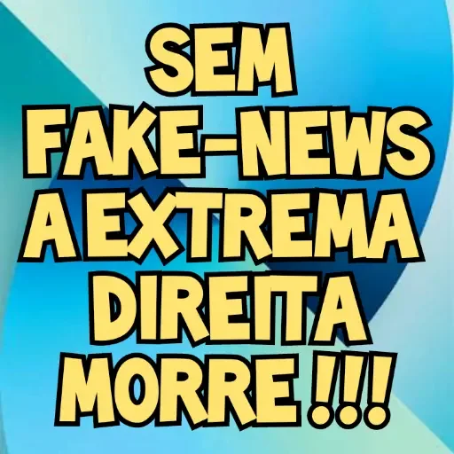 Um fundo azul com texto amarelo que diz 'SEM FAKE-NEWS A EXTREMA DIREITA MORRE!!!'