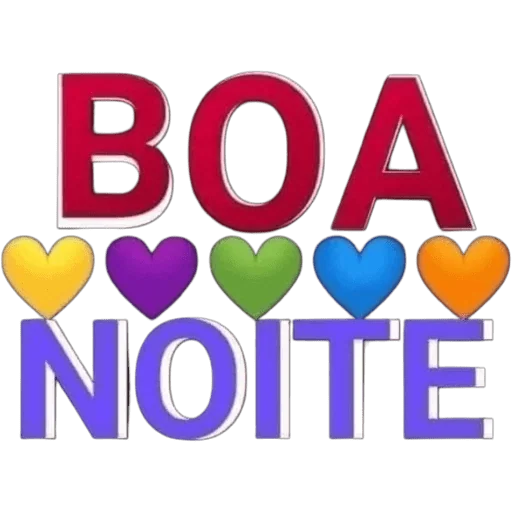 Um sticker colorido com a frase 'BOA NOITE' em letras grandes, acompanhada de seis corações coloridos.