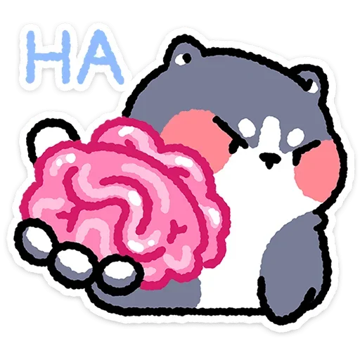 Um urso cinza com expressão de dor de cabeça segura um cérebro rosa na pata. A letra 'HA' aparece no canto superior esquerdo.