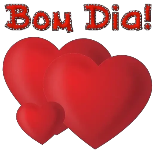 Dois corações vermelhos e um coração vermelho menor, com a frase 'Bom Dia!' em letras vermelhas.