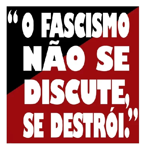 Uma citação em branco sobre um fundo vermelho e preto: 'o fascismo não se discute, se destrói.'