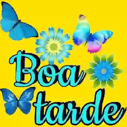 Flores azuis e borboletas azuis em um fundo amarelo com o texto 'Boa tarde' em letras azuis.