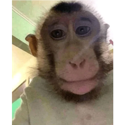 Macaco com expressão facial engraçada, olhos grandes e pelagem castanha, em ambiente com parede verde ao fundo.