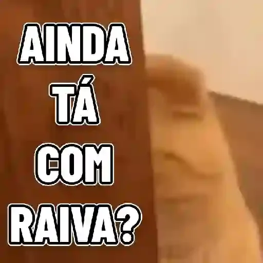 Um texto em branco com sombra preta sobreposto a uma imagem desfocada de uma mão. O texto em grandes letras brancas com contorno preto diz 'AINDA TÁ COM RAIVA?'