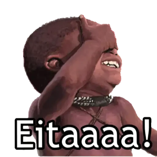 Menino negro com expressão de surpresa ou dor, mão na cabeça e texto 'Eitaaaa!'