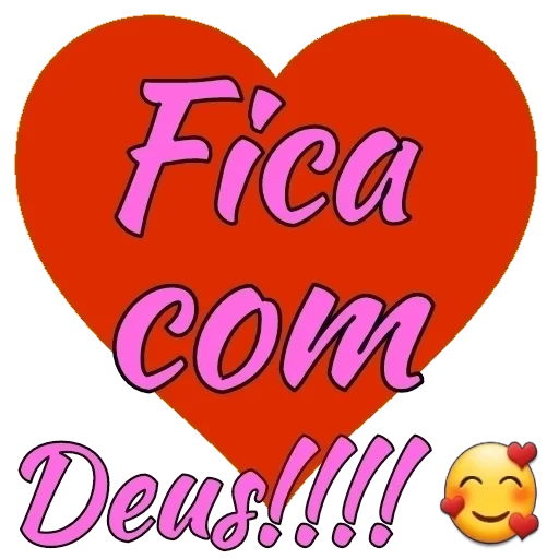 Um coração vermelho grande com o texto 'Fica com Deus!!!!' em letras rosa. Abaixo do texto, um emoji de sorriso amarelo com corações vermelhos nos olhos.
