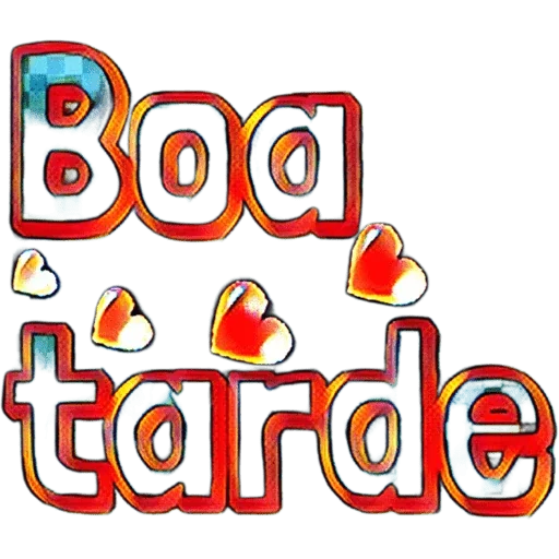 Um sticker com a frase 'Boa tarde' em letras grandes e coloridas, com corações ao redor.
