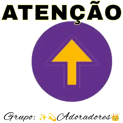 Um círculo roxo com uma seta amarela apontando para cima e o texto 'ATENÇÃO' em preto com um pequeno emoji de fogo no final.
