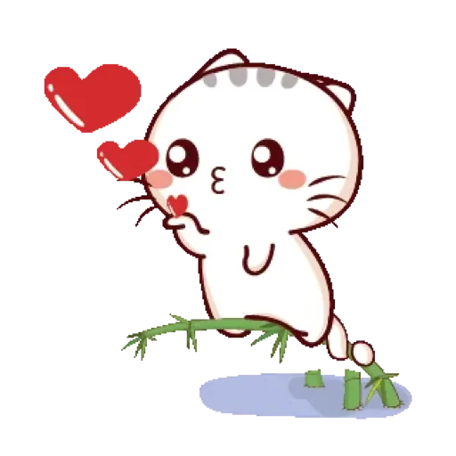 Um gato branco fofinho com um coração vermelho saindo de sua bochecha e outro coração flutuando perto de sua cabeça.