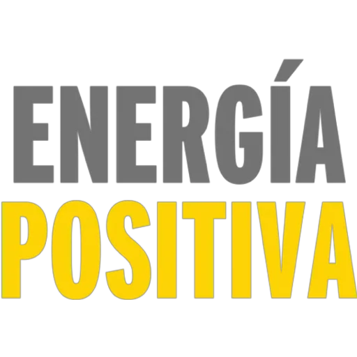 Uma figurinha com as palavras 'ENERGÍA POSITIVA' em letras grandes e coloridas. A palavra 'ENERGÍA' está em cinza e 'POSITIVA' em amarelo.