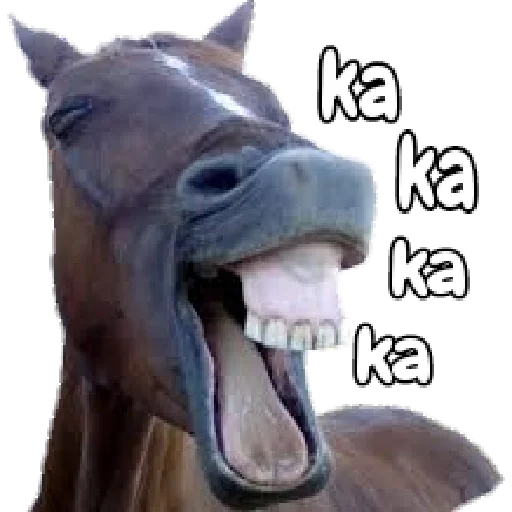 Um cavalo com a boca aberta e dentes aparecendo, com o texto 'ka ka ka ka' ao lado.