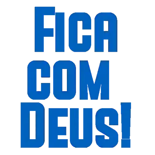 Letras azuis em caixa alta que dizem 'FICA COM DEUS!'.