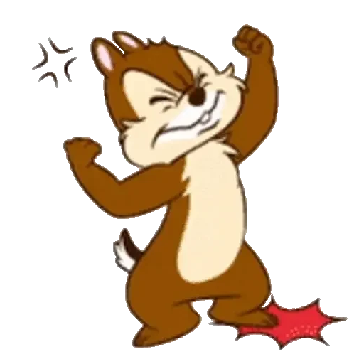 Um esquilo cartoon com expressão de alegria e braço levantado, com uma estrela vermelha no chão.